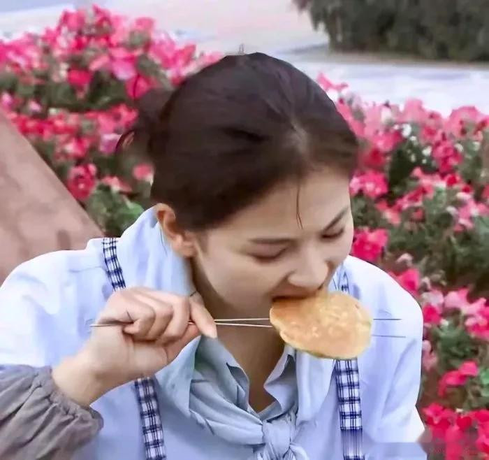 网友街头偶遇刘涛, 没想到这么大明星也吃烧饼, 也太接地气了!